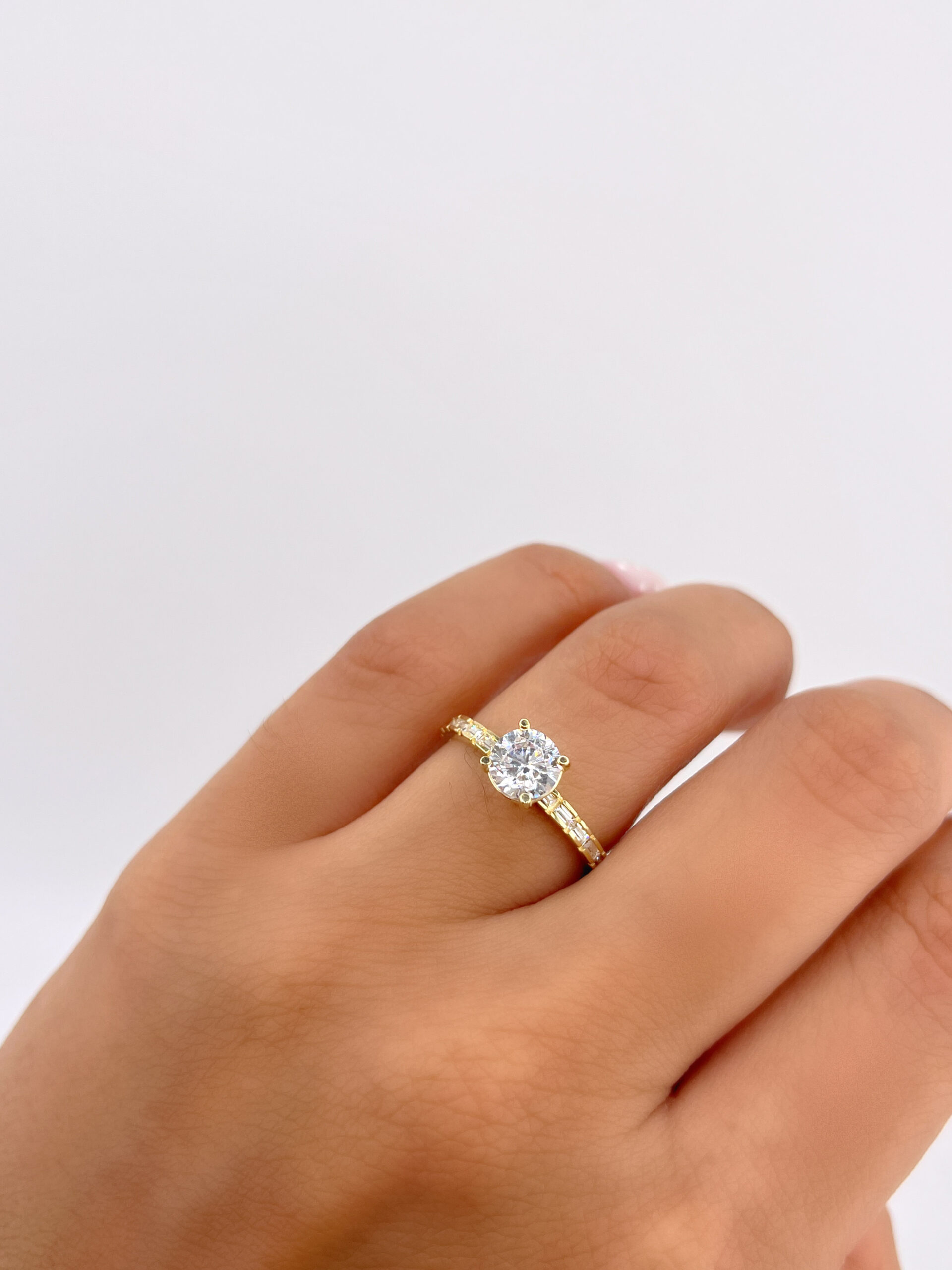 ANILLO SOLITARIO CON BANDA DE ZIRCONES EN CORTE BAGUETTE ORO 18K #22