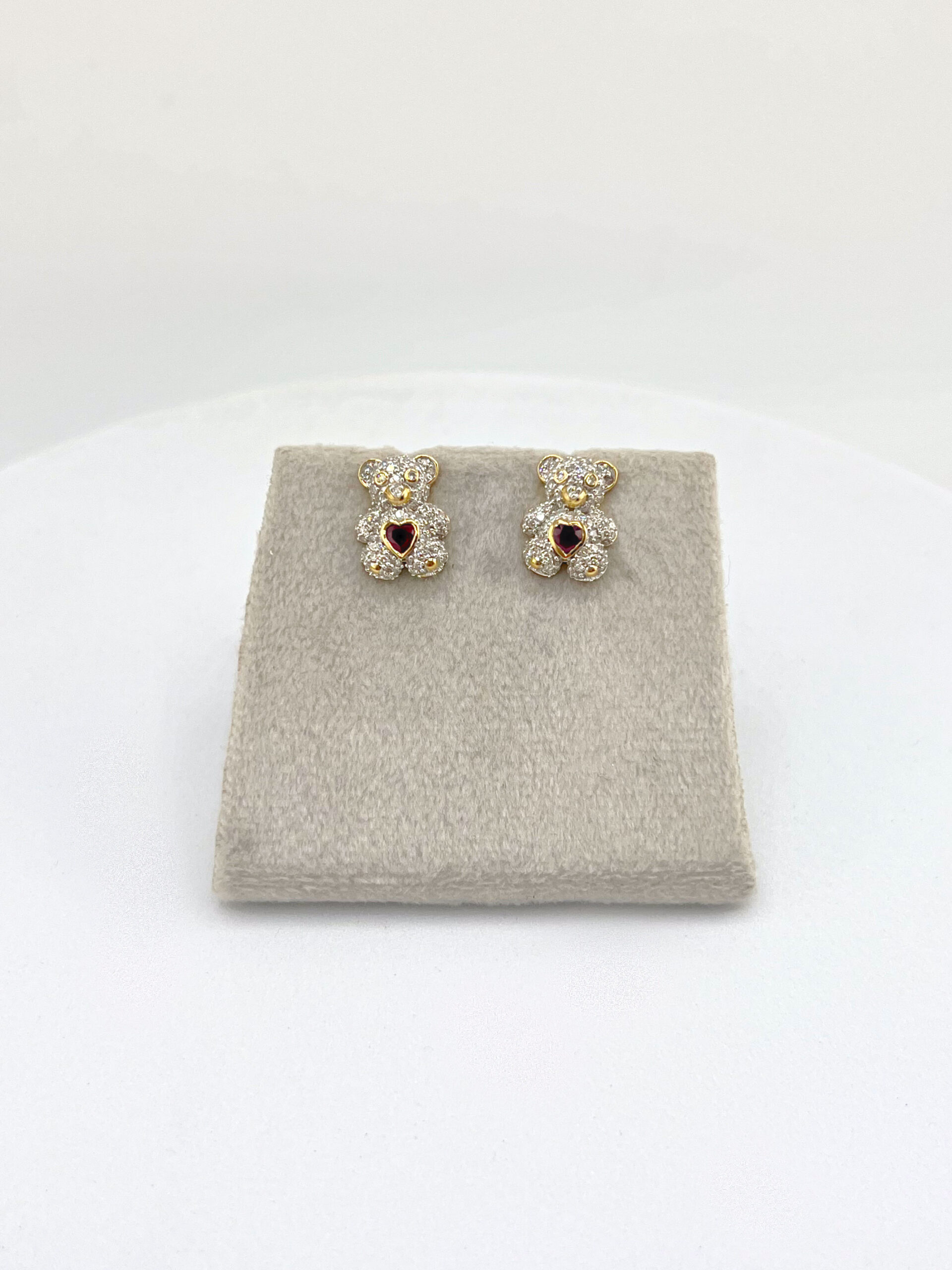 ZARCILLOS OSOS CON RUBI Y DIAMANTES 1/2CT ORO 10K