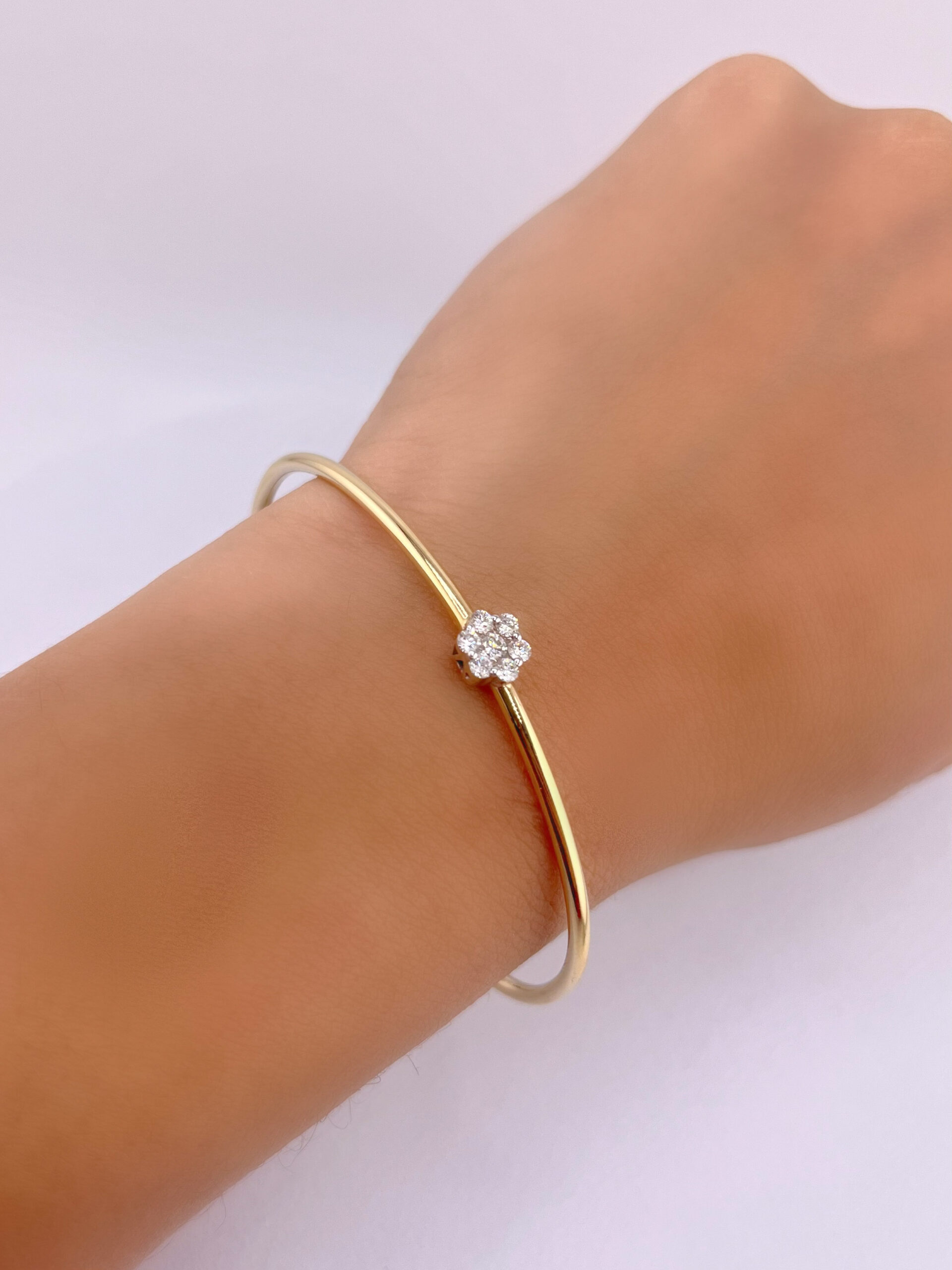 PULSERA RIGIDA CON FLOR EN DIAMANTE 0.09CT ORO 14K