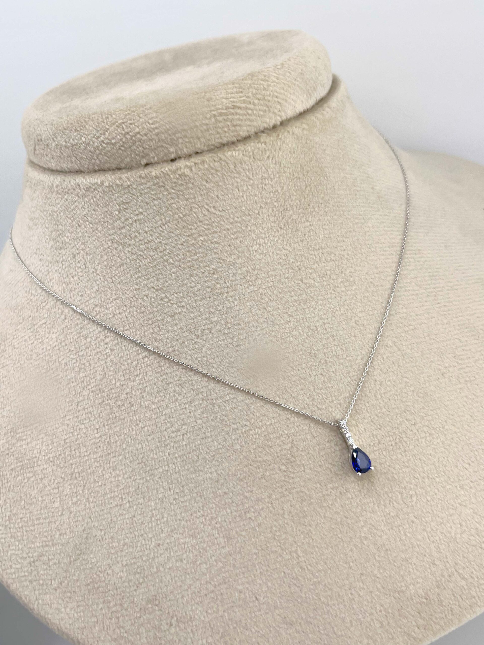 GARGANTILLA SAFIRO CON FILA DE DIAMANTES 0.03CT ORO BLANCO 18K
