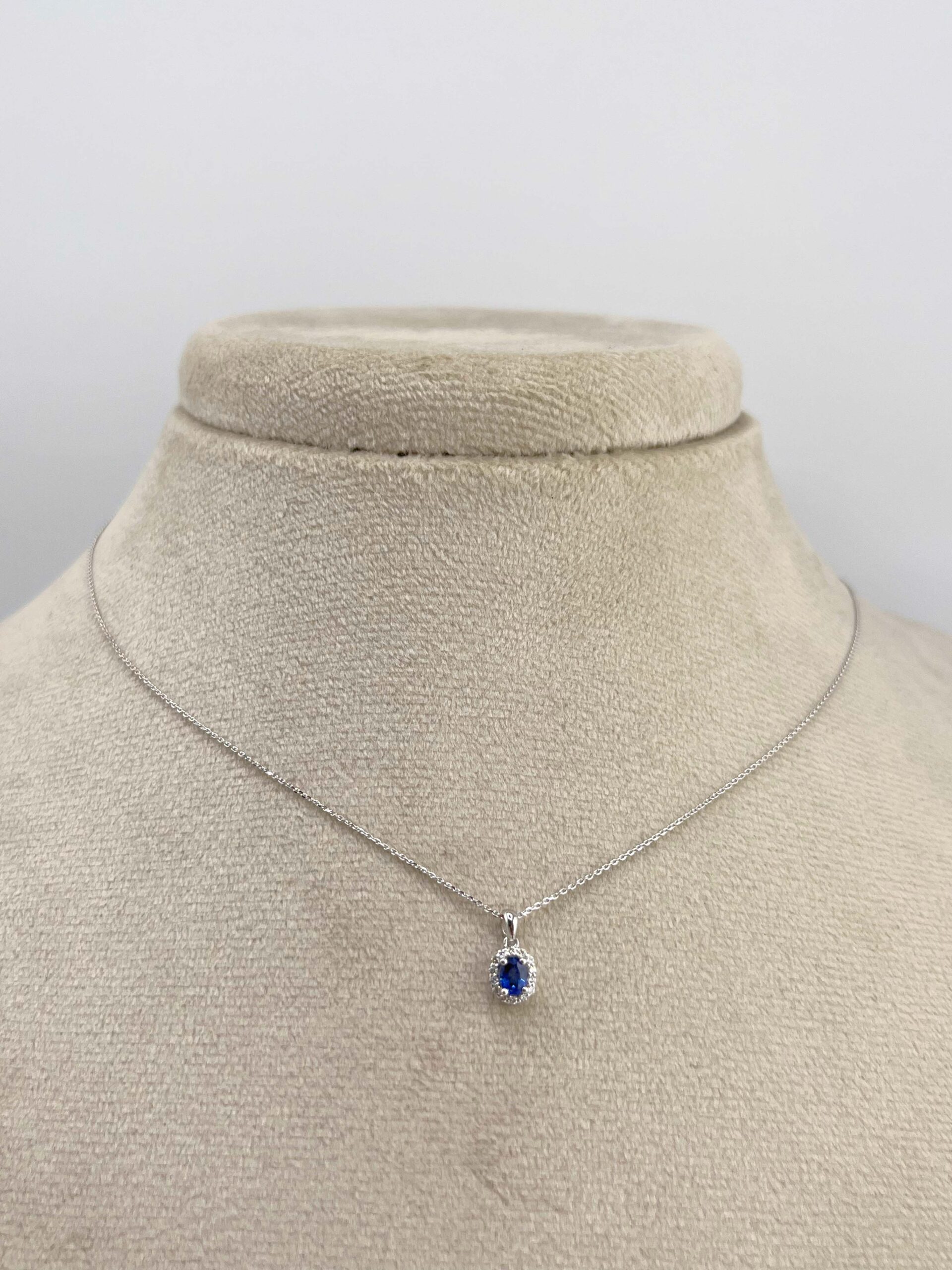 GARGANTILA ZAFIRO CON BORDE DE DIAMANTE 0.05CT ORO BLANCO 18K