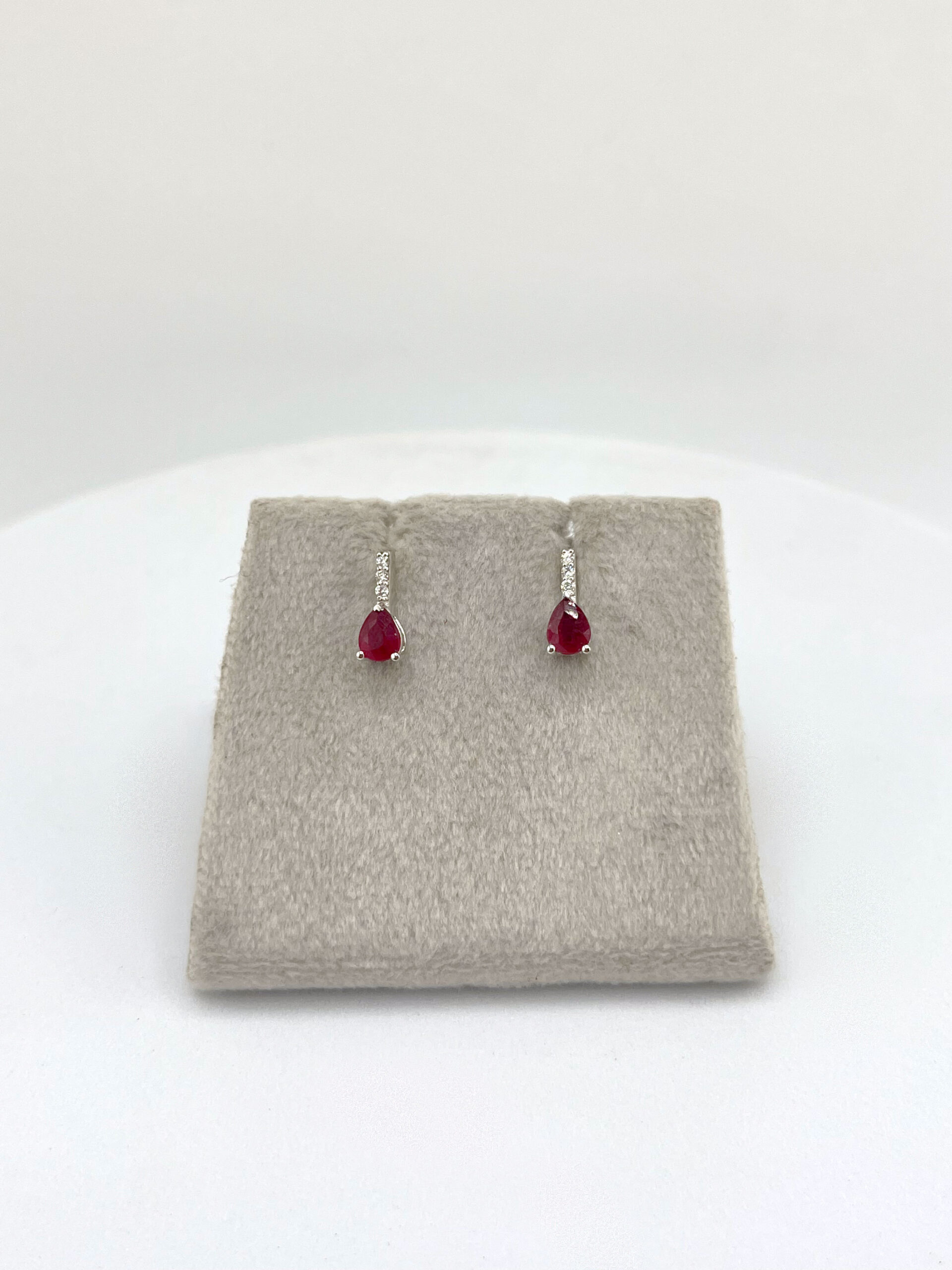 ZARCILLOS CORTE PERA CON RUBI Y LINEA DE DIAMANTES 0.04CT ORO BLANCO 18K