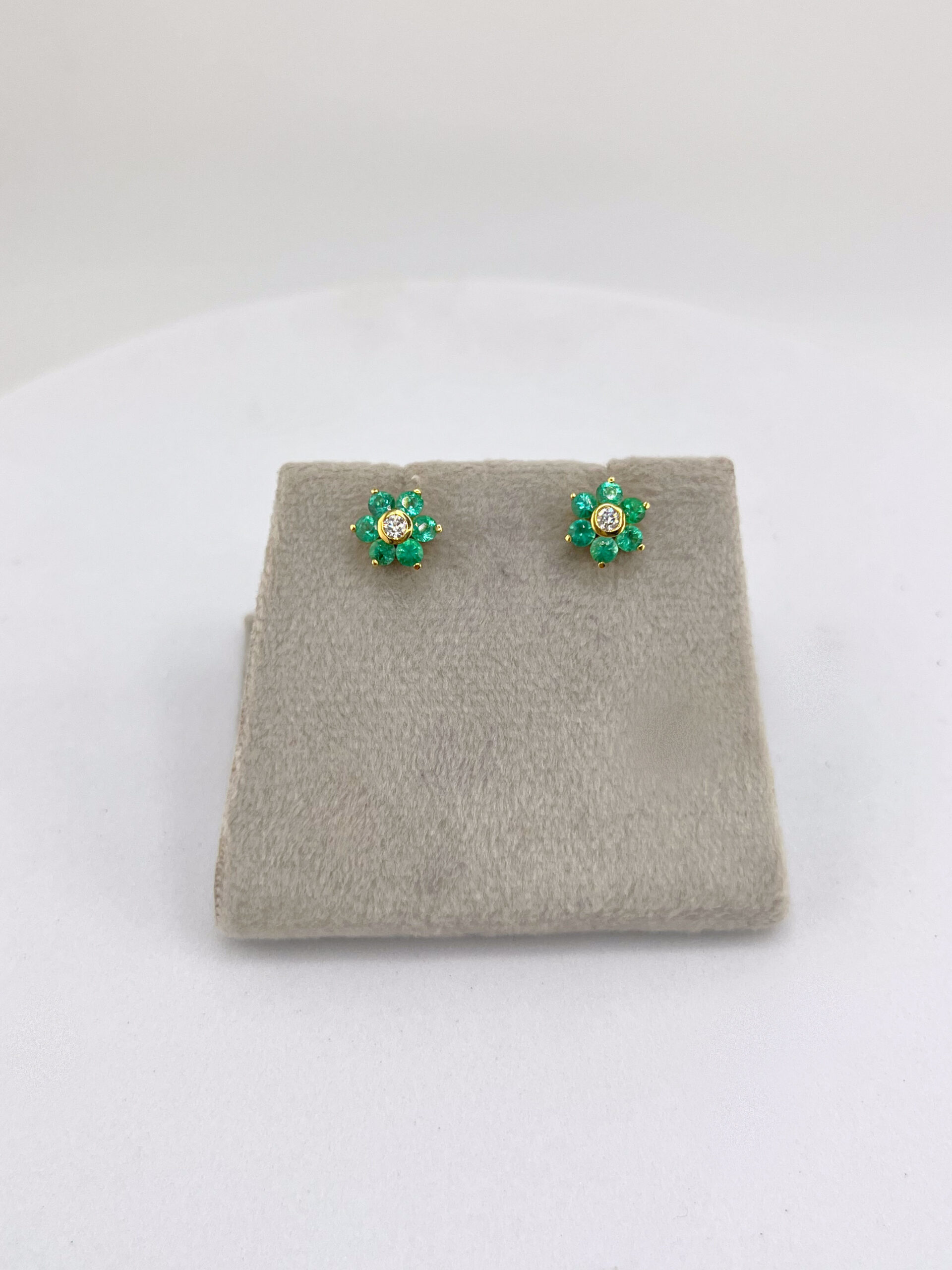 ZARCILLOS FLOR CON ESMERALDAS 0.09CT ORO 18K