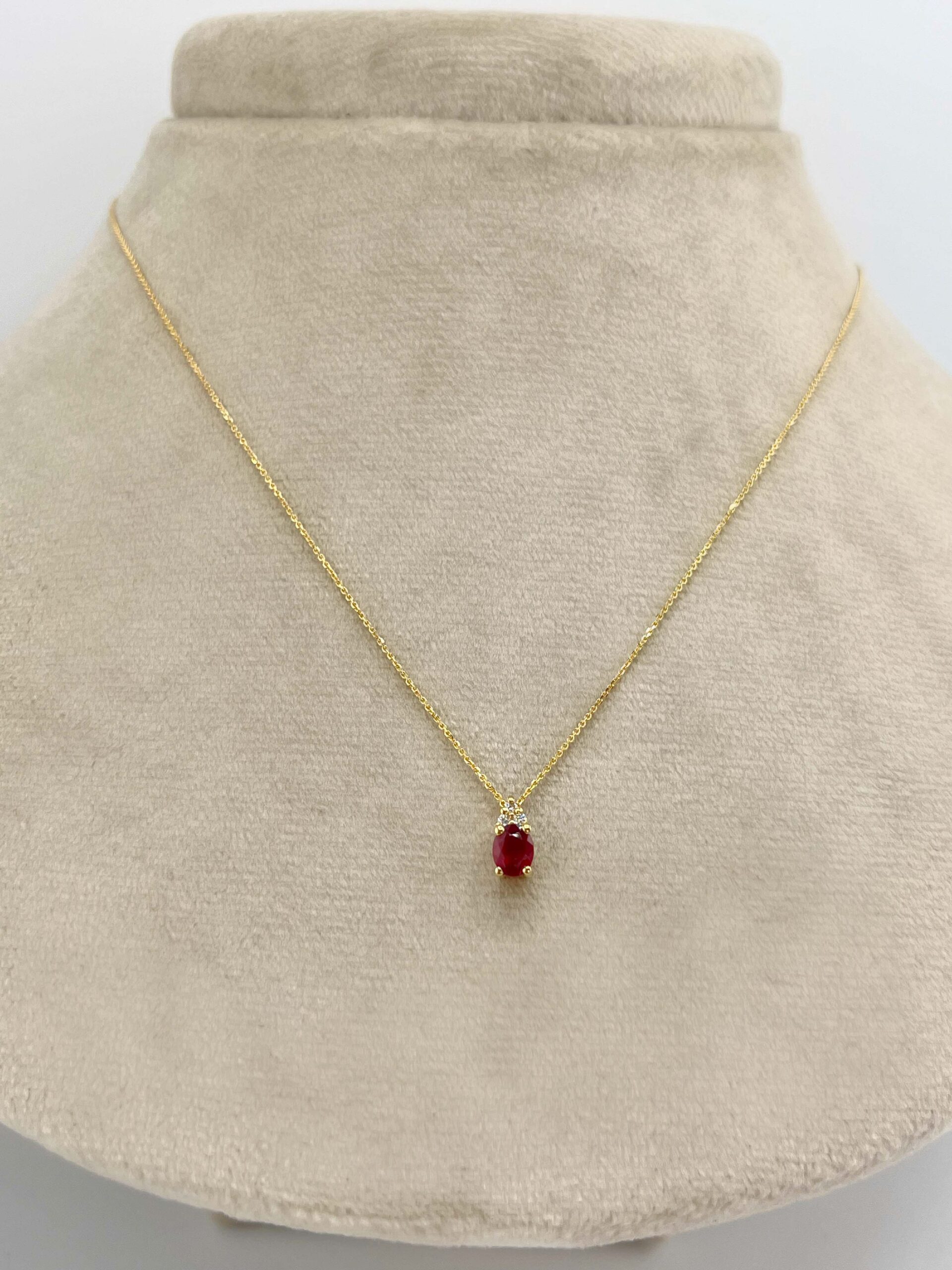 gargantilla con rubi ovalada con corona de diamante 0.03ct oro 18k