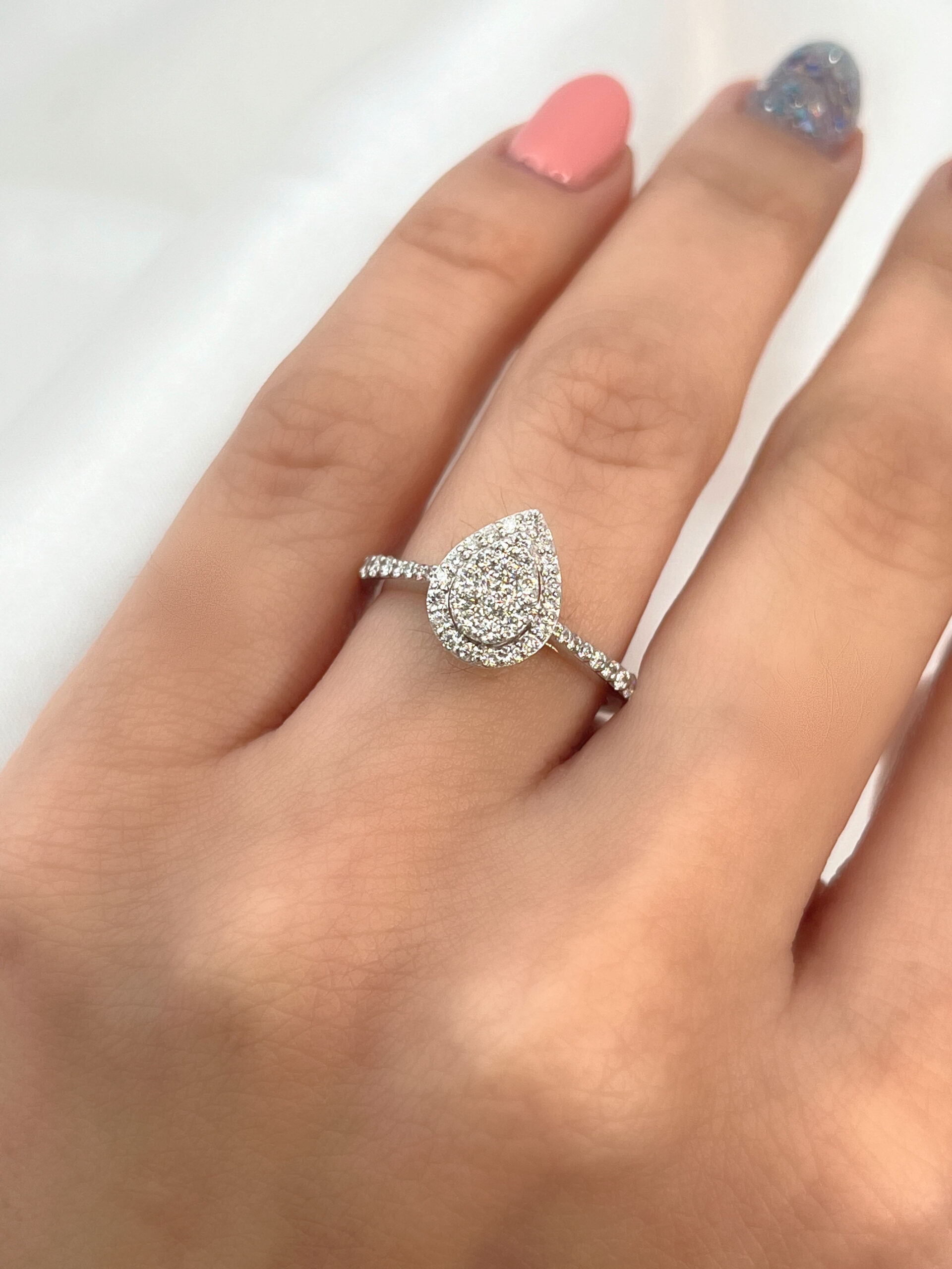 anillo corte pera con diamantes 0.38ct oro blanco 18K