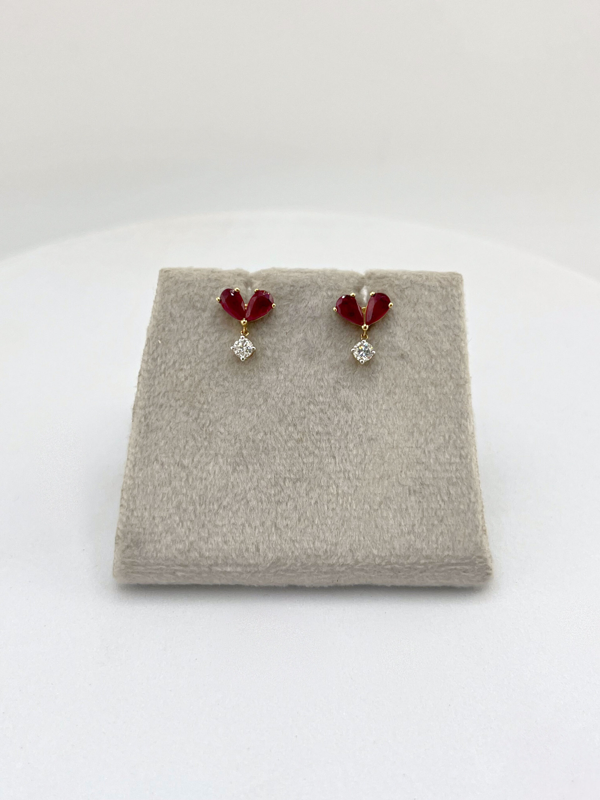 ZARCILLOS RUBI CON DIAMANTE COLGANTE 1/6CT ORO 14K