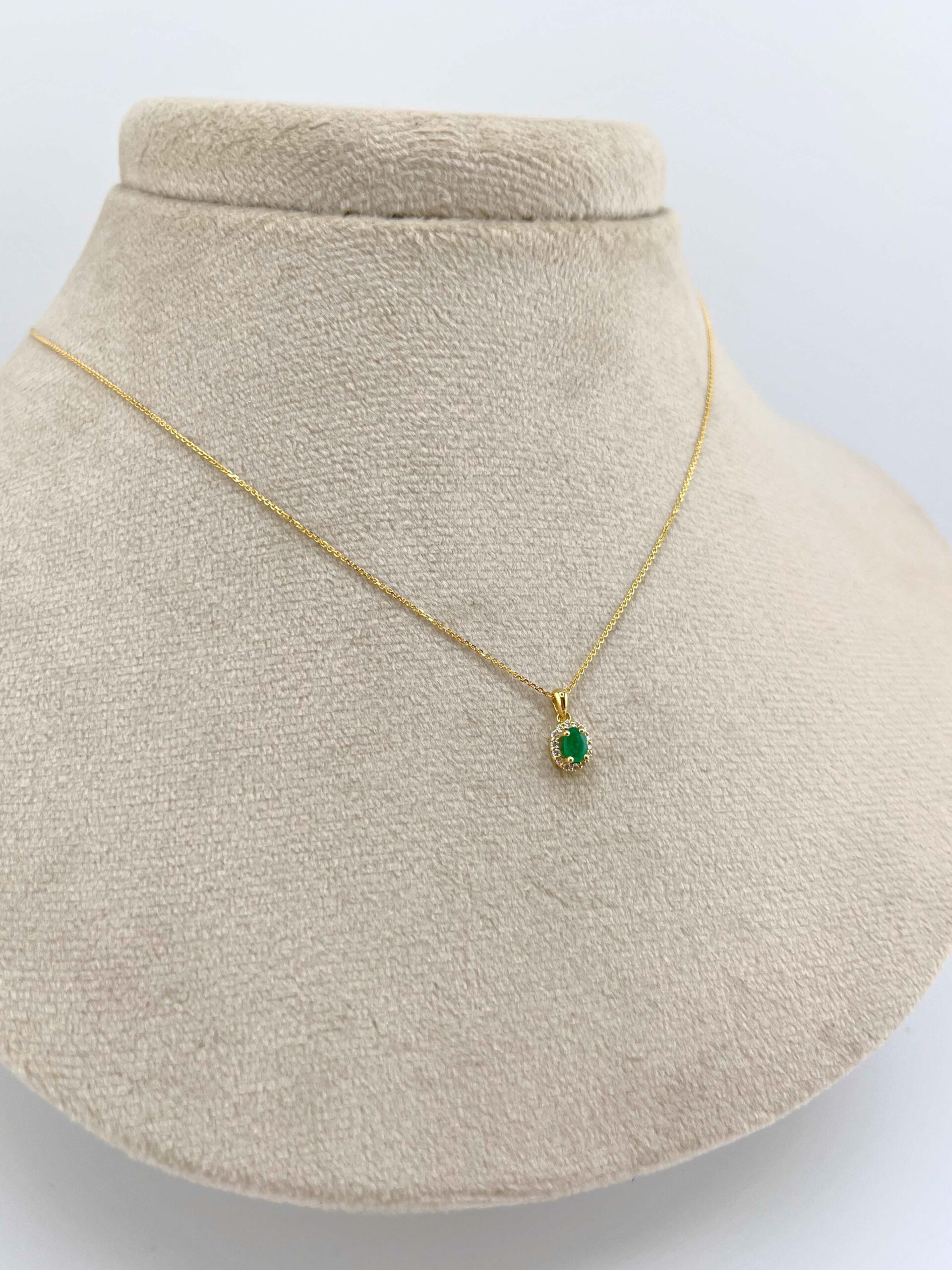 gargantilla ovalada con esmeralda y borde de diamantes 0.06ct oro 18k