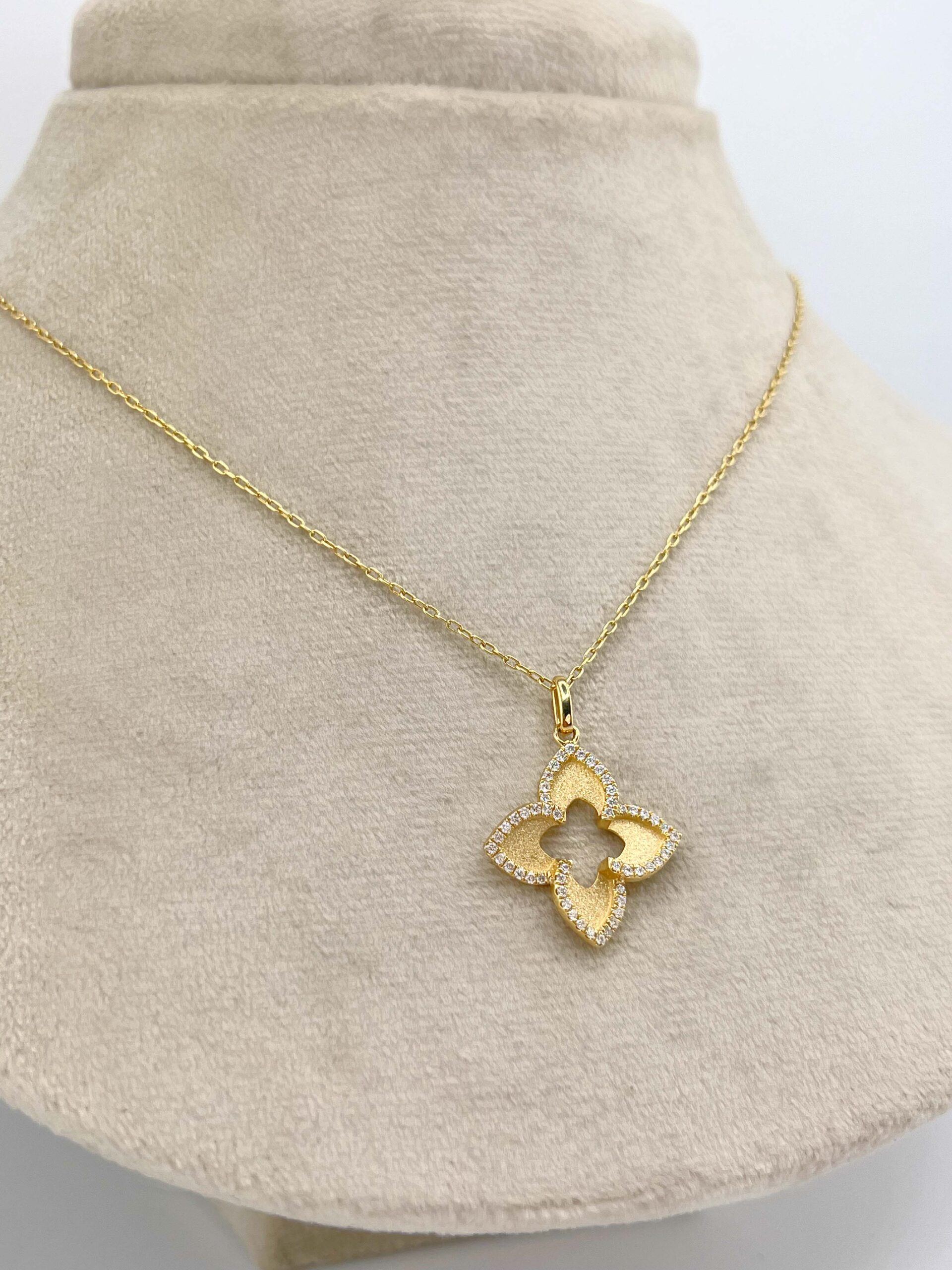 gargantilla flor borde de diamantes 0.24ct oro 18K