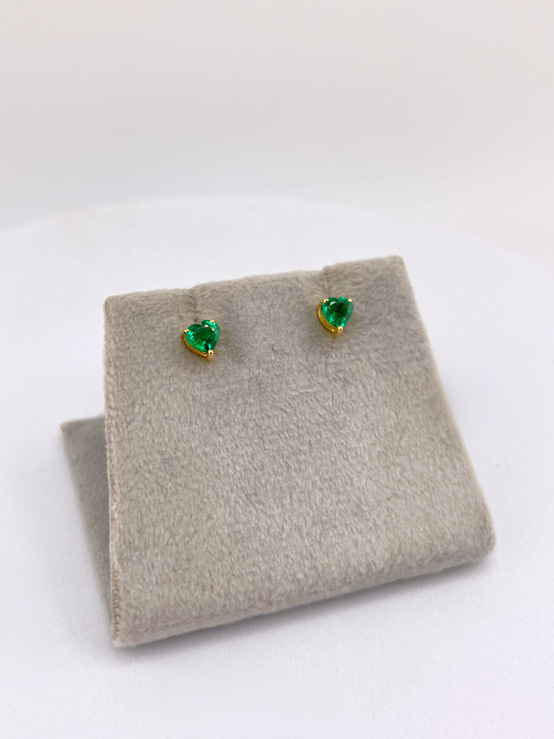 zarcillos con esmeraldas corazon 0.60ct oro 18k