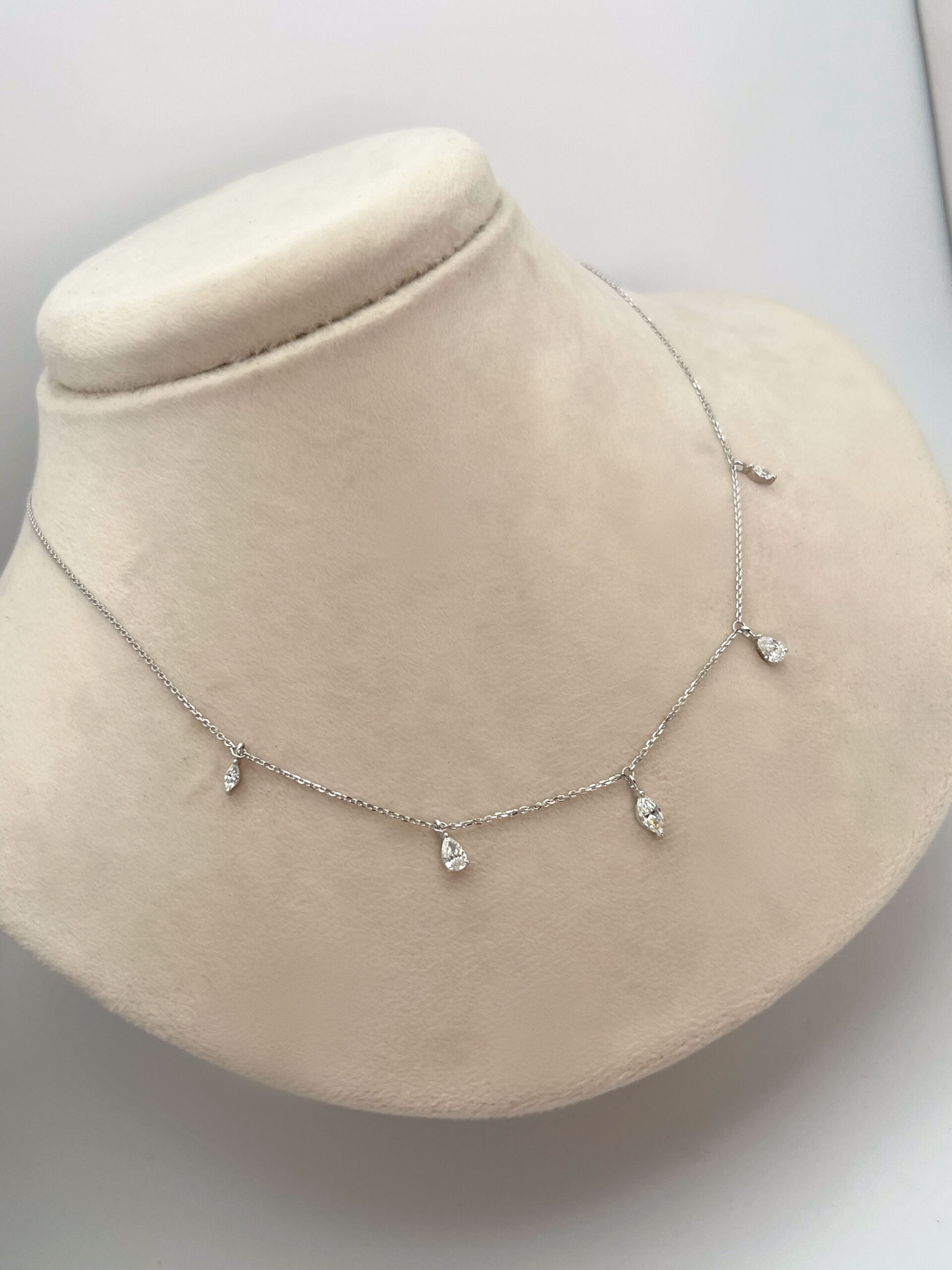 GARGANTILLA CON DIAMANTES COLGANTES 0.79CT ORO BLANCO 18K