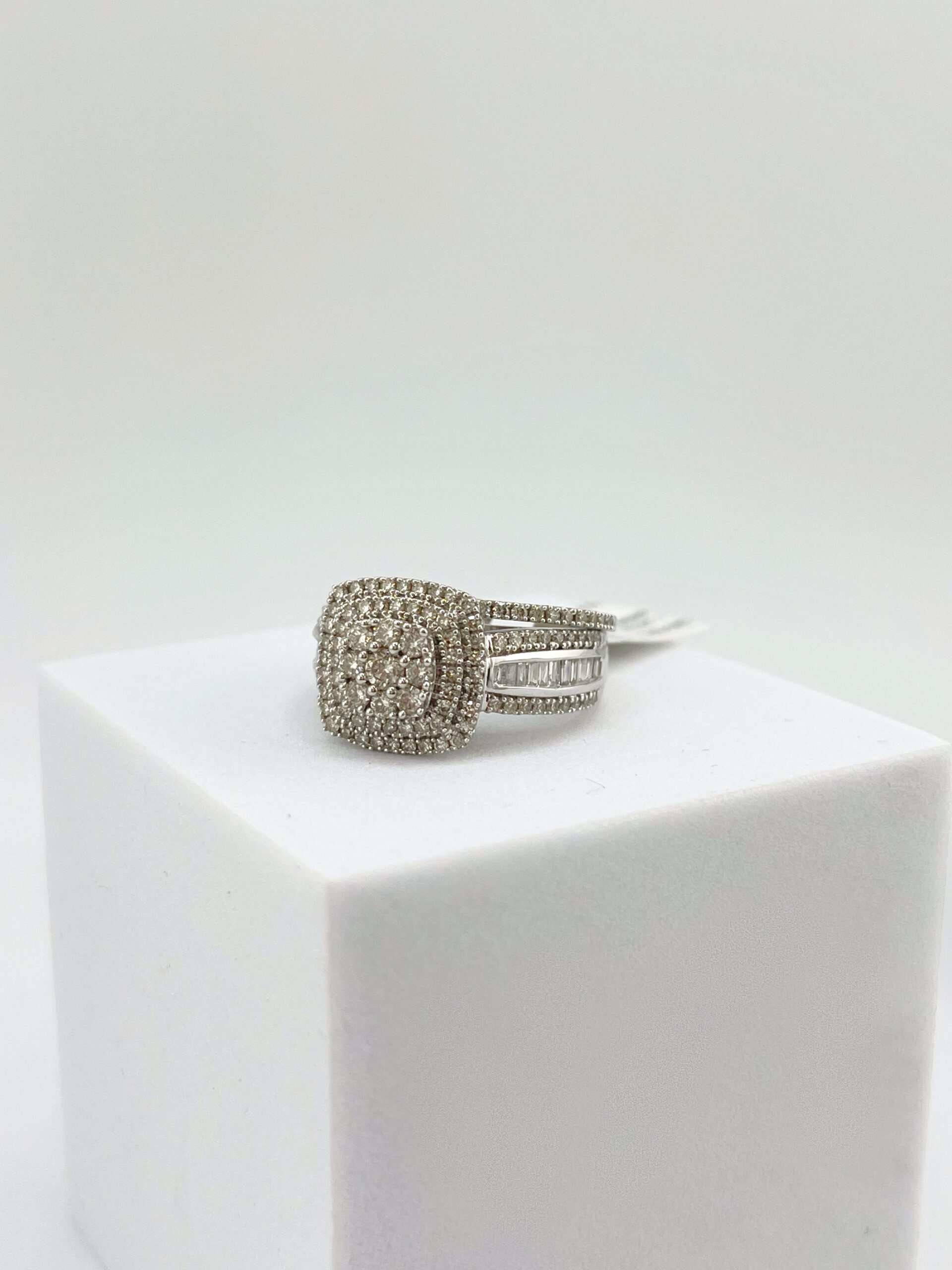 anillo de compromiso doble corte cojin con diamantes 1/4ct oro 10K